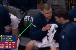 第三节,掘金核心约基奇攻防两端全面发挥,单节砍下10分5篮板4助攻,帮助球队单节净胜19分。