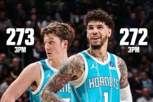 拉梅洛·鲍尔本场投中5记三分,赛季三分命中数是272记,惜败队友克尼佩尔排在联盟第二。
