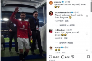 曼联官方社媒调侃:“布鲁诺,你这下化解得真漂亮!”